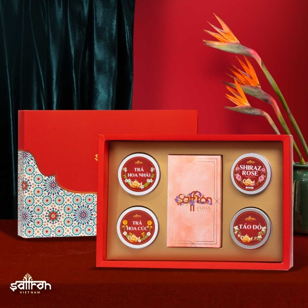 Ai cũng muốn được nhận một hộp quà tặng đẳng cấp, giá trị. Tặng một món quà đẳng cấp cũng giúp nâng tầm vị thế của người đi tặng. Trong hộp quà Tết này có một tặng phẩm là Saffron Jahan, vốn được mệnh danh là “vàng đỏ” Trung Đông nhờ sự quý hiếm & đắt đỏ. Đây là loại thảo dược thuộc loại đắt giá nhất hiện nay & thường được dùng làm quà tặng để chăm sóc sức khỏe & làm đẹp.
