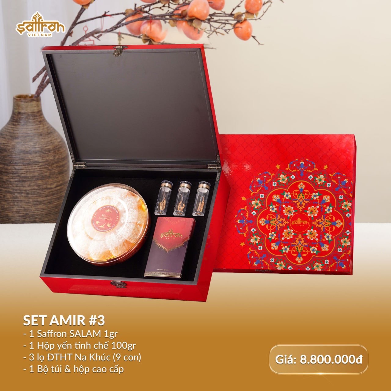 HỘP QUÀ AMIR #3 - Saffron SALAM 1gr + 100gr yến tinh chế 1 + 9 con đông trùng hạ thảo