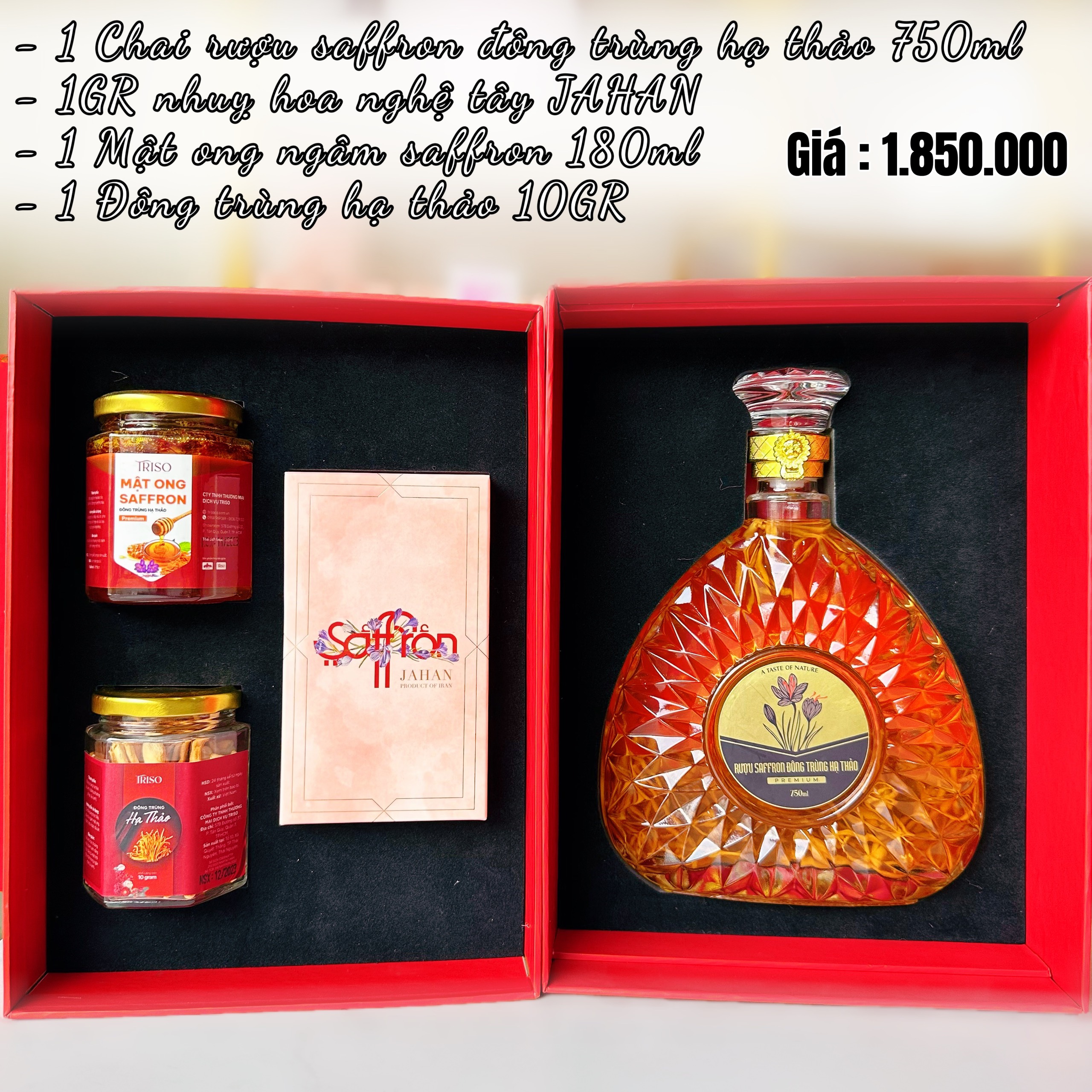 Hộp quà tết ASHIMA #7 (Rượu ĐTHT + Saffron JAHAN + Mật ong saffron + Đông trùng hạ thảo)