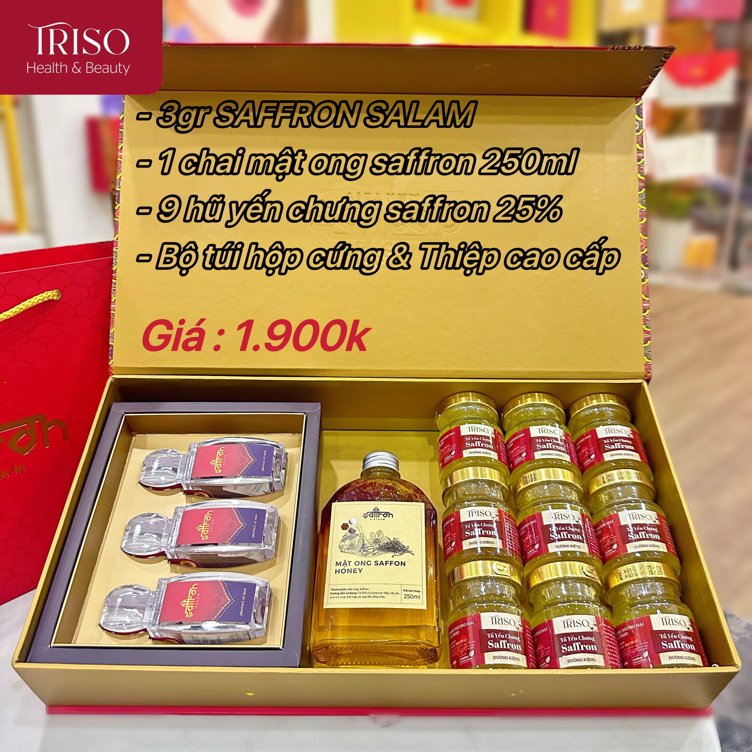 Hộp quà tết DELARA #2 (3GR Saffron SALAM + Mật ong saffron 250ml + Yến chưng)