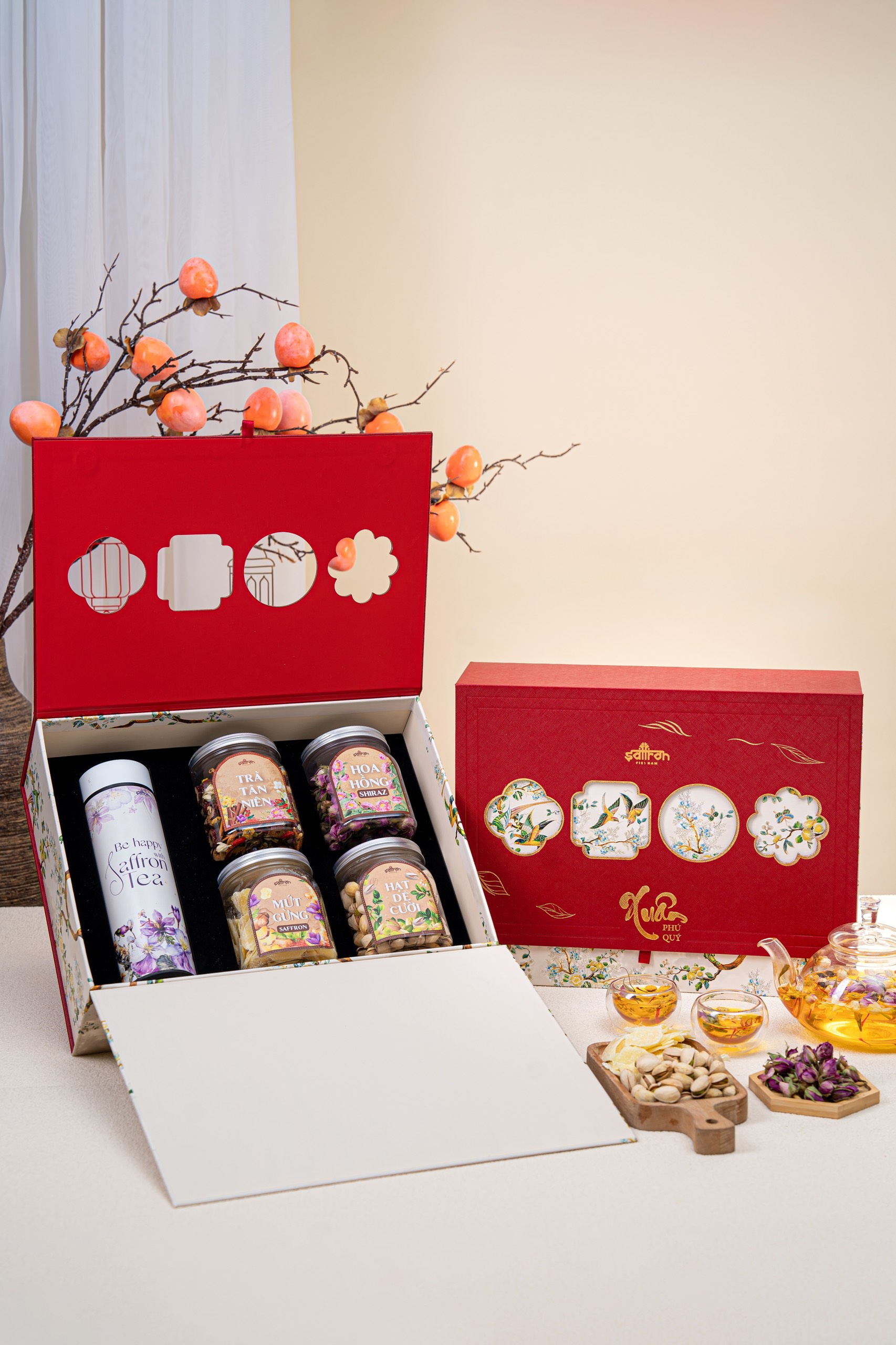 HỘP QUÀ TẾT DORIS - 4 Hộp trà mứt + 1 Bình giữ nhiệt cao cấp