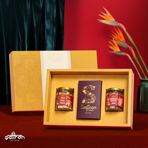 Khác với những hộp quà tặng thông thường, bên trong mỗi hộp ROYA #2 là những sản phẩm chăm sóc sức khỏe chất lượng nhất hiện nay: Saffron (nhụy hoa nghệ tây), một loại thảo dược quý hiếm của Trung Đông và 2 hũ trà hoa thượng hạng.