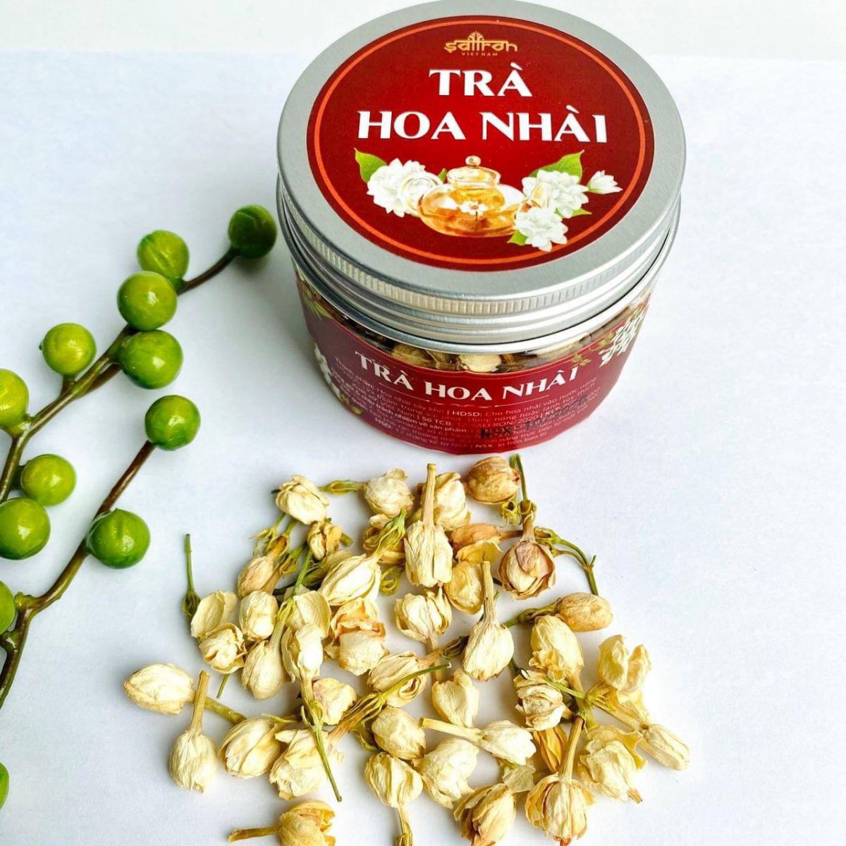 Trà hoa nhài được sấy lạnh nguyên bông. Từng bông nhài đều được tuyển lựa kỹ càng và sấy lạnh để giữ nguyên màu sắc – hương thơm và dược chất.