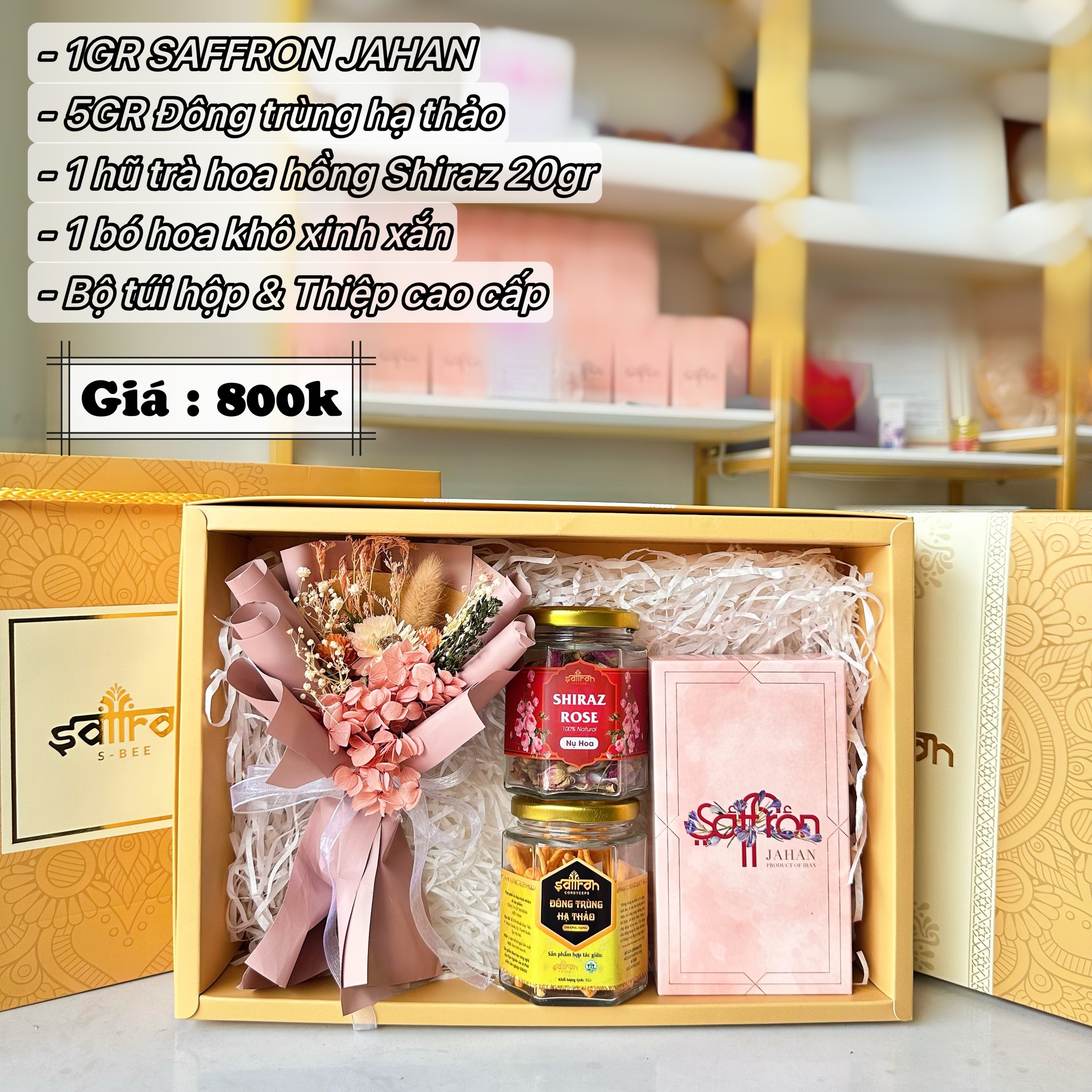 • 1 Bộ túi hộp kèm hoa và thiệp chúc (hoa màu ngẫu nhiên)