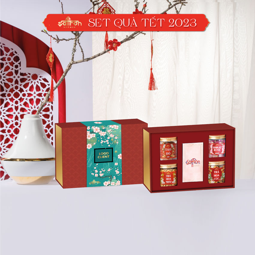 Set quà Tết EMAD #1 không chỉ thiết kế sang trọng, ấn tượng mà bộ tặng phẩm bên trong càng đặc biệt hơn. Có nhụy hoa nghệ tây Saffron – Thảo dược “vàng đỏ” của Trung Đông. Có hũ trà hoa thảo mộc & táo đỏ sấy khô thượng hạng với nhiều dưỡng chất quý. Thêm 2 hũ mứt Tết Saffron độc đáo không có trên thị trường.