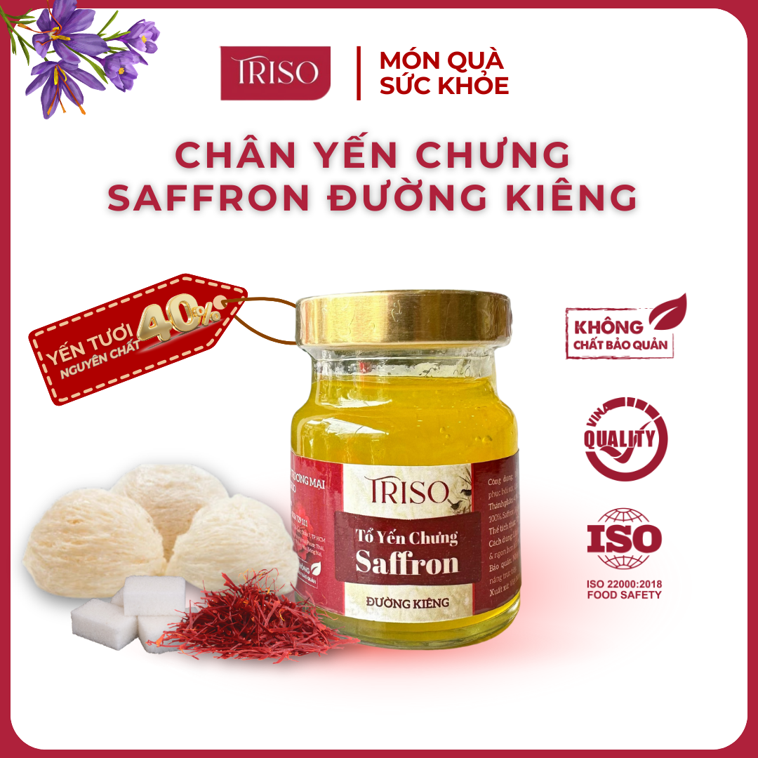 Sử dụng 100% yến nguyên chất, TRISO mang đến cho quý khách hàng sản phẩm Tổ yến chưng saffron đường kiêng. Một sản phẩm dinh dưỡng và vô cùng thơm ngon.